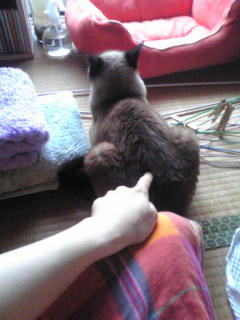 夕方、洗濯物を畳んでいるとやってきたタビーさん。