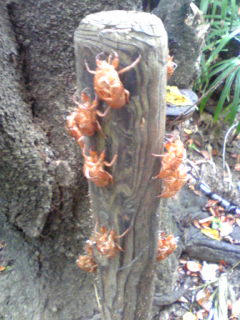 抜け殻だらけの杭…庭中こんな感じ。