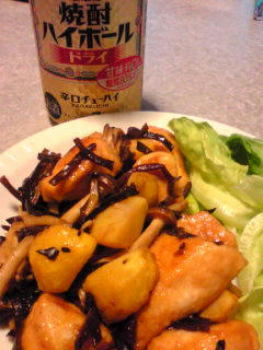 きくらげとしめじも入れてお醤油味で。