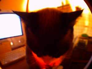明け方、タビちゃんがかごの向こうでアヤシゲ…