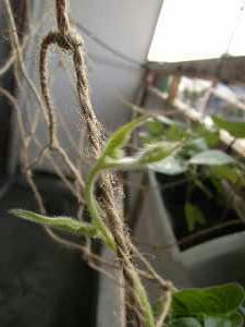 見ていたら葉っぱの裏に小さいイモムシを発見。