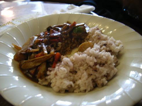 どっちかというとカレーっぽい。ごはんは雑穀ごはん。